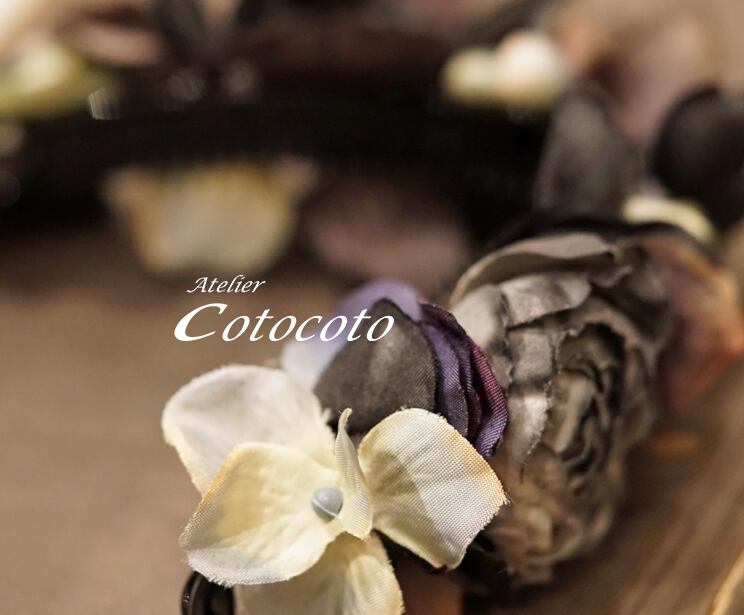 ◾️アーティフィシャルフラワーを使用しております。その特性上、使用を重ねると繊維が出ているように見えることがあります。また、一つ一つ染色を施した素材を使用しており、アンティークな風合いを大切にしているため、色むらに見えたりする部分がありますが、デザインの特性・味わいとしてあらかじめご理解いただいたうえでご注文ください。
