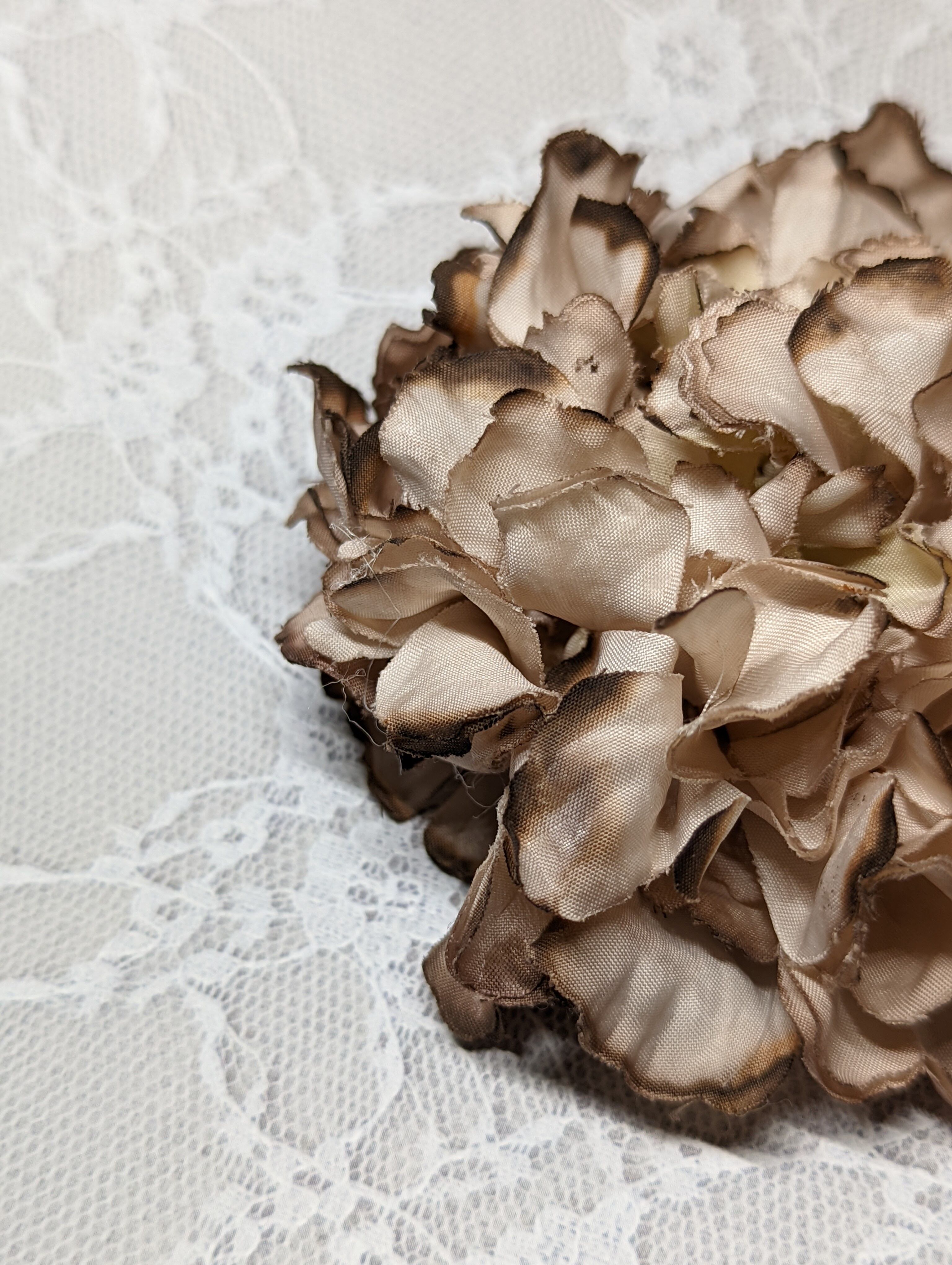◾️アーティフィシャルフラワーを使用しております。その特性上、使用を重ねると繊維が出ているように見えることがあります。また、一つ一つ染色を施した素材を使用しており、アンティークな風合いを大切にしているため、色むらに見えたりする部分がありますが、デザインの特性・味わいとしてあらかじめご理解いただいたうえでご注文ください。